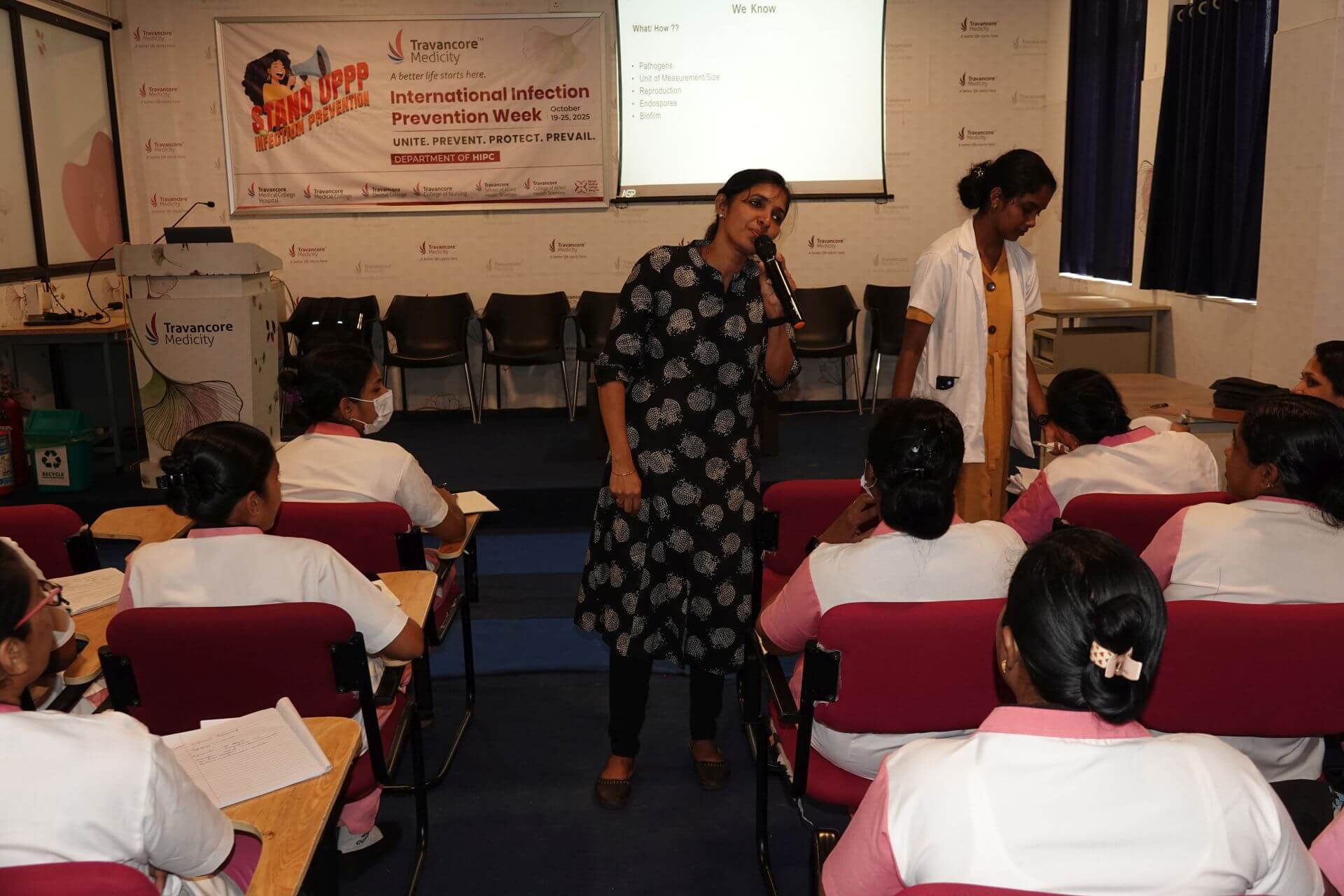 Travancore Medicity Hospital observed International Infection Prevention Week with a series of awareness initiatives aimed at promoting hygiene and safety practices. The Hospital Infection Prevention and Control (HIPC) team organised interactive awareness sessions at nearby schools, engaging students on the importance of hand hygiene and infection control. Informative exhibitions and talks were also held within the hospital premises, highlighting key measures to prevent healthcare-associated infections and ensure patient safety. The week-long program successfully spread awareness among staff, students, and the public about the vital role of infection prevention in protecting community health.