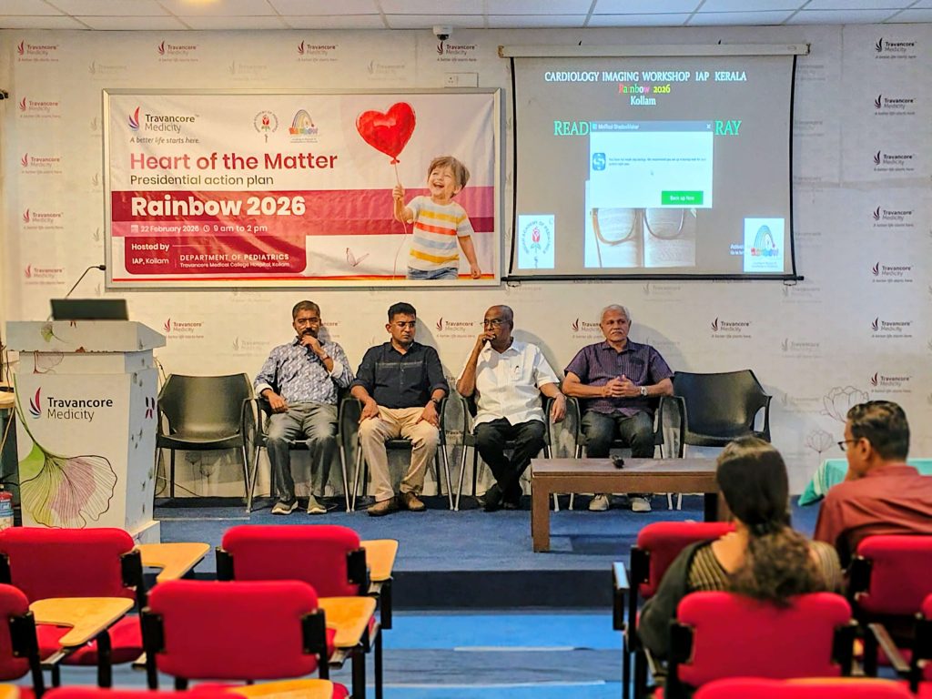 Rainbow 2026 – Heart of the Matter Paediatrics Cardiology Imaging  workshop was organized by the Department of Pediatrics on 22 February 2026 at Travancore Medicity under the IAP Kerala Presidential Action Plan. The workshop aimed to enhance awareness and knowledge in pediatric cardiac care through interactive sessions for healthcare professionals.Dr.Zulfikar Ahamed  consultant Cardiologist KIMS TRIVANDRUM and Dr. Jayakrishnan pediatrics cardiologist SAT TVM were the speakers.